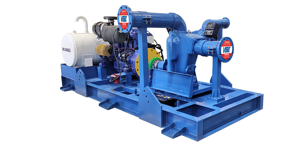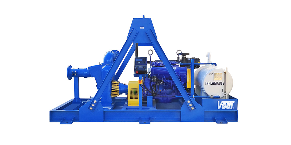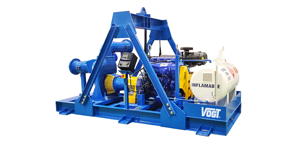 El motor de la bomba es de combustión diésel, proporcionando una fuente de energía potente y autónoma. La bomba está montada en un skid con estructura de izaje y un sistema de amortiguación de vibraciones, lo que facilita su transporte y asegura un funcionamiento estable.